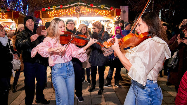 Творческият урок се проведе в Регионалната библиотека на града и, разбира се, остави следа от усмивки след себе си. Със специален и много вълнуващ концерт дамите от формацията отбелязаха финала на своето последно турне за годината в Плевен. Срещата с децата от музикалното училище в града бе особено сърдечна и вдъхновяваща. Малките музиканти от класа по цигулка на Елена Николова и Деница Златева приеха предизвикателството да свирят на открито в студената вечер и поставиха началото на музикалното събитие със скица от Марин Големинов.