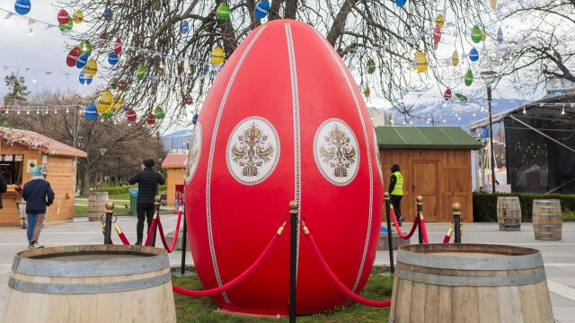Фокусът тази година е впечатляващата арт инсталация – 3-метрово червено великденско яйце, украсено с българска шевица, което бързо се превърна в любима атракция за посетителите и един от най-сниманите символи. Яйцето носи послания за здраве, ново начало и връзка с българските традиции.